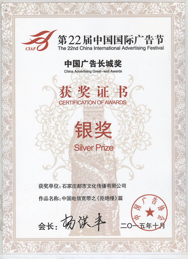 第22屆中國國際廣告節(jié)榮獲銀獎