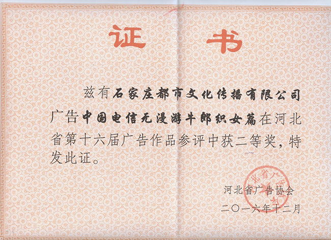 河北省第十六屆廣告作品參評(píng)榮獲二等獎(jiǎng)